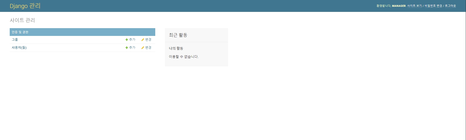 - Django 가 설치되면 관리자페이지가 자동으로 설치됨