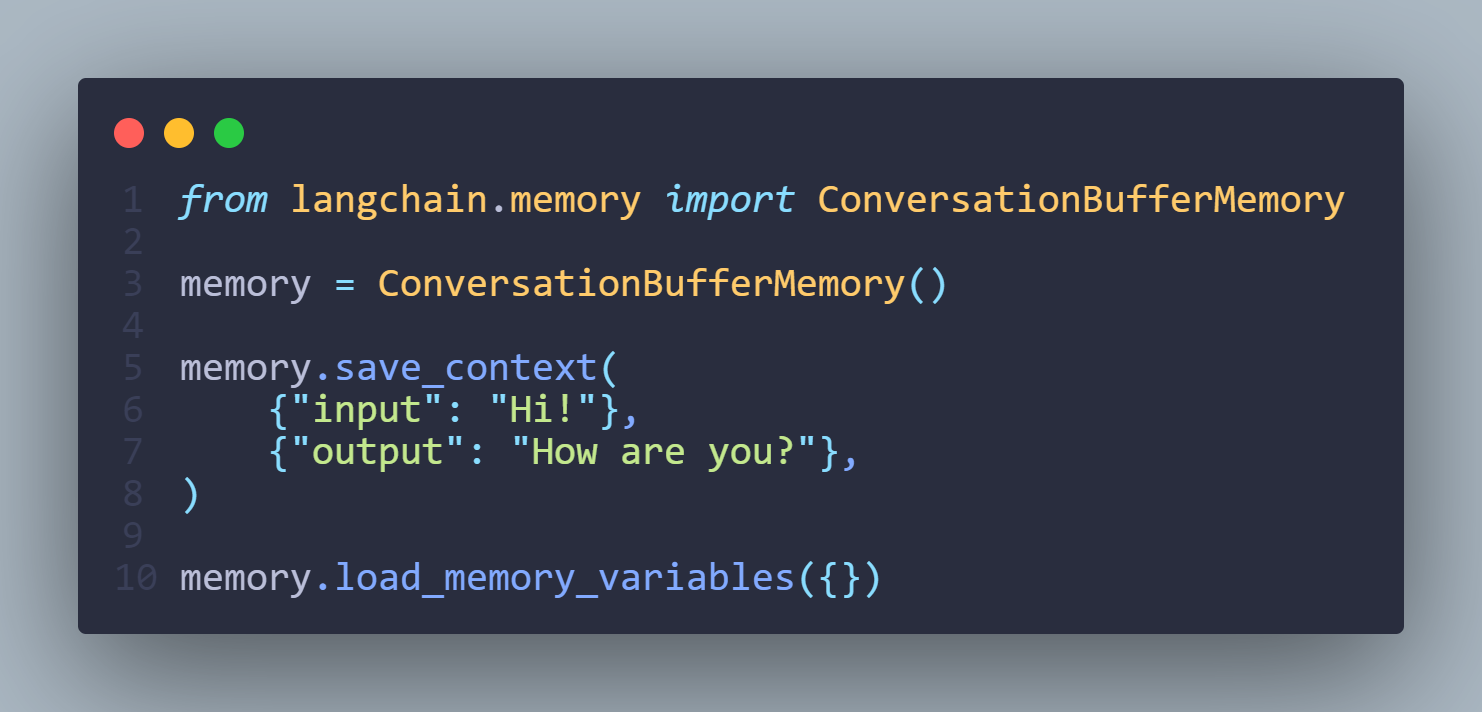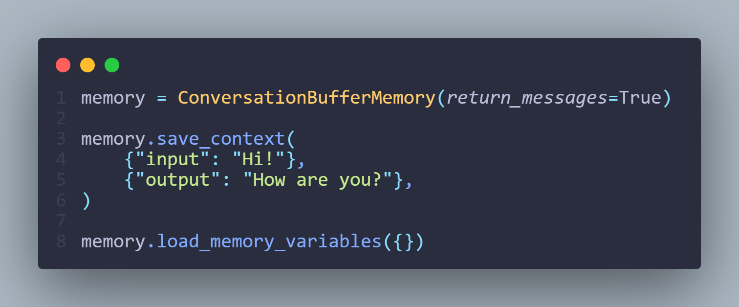 ConversationBufferMemory는 메시지를 저장한 다음 변수에서 메시지를 추출합니다.