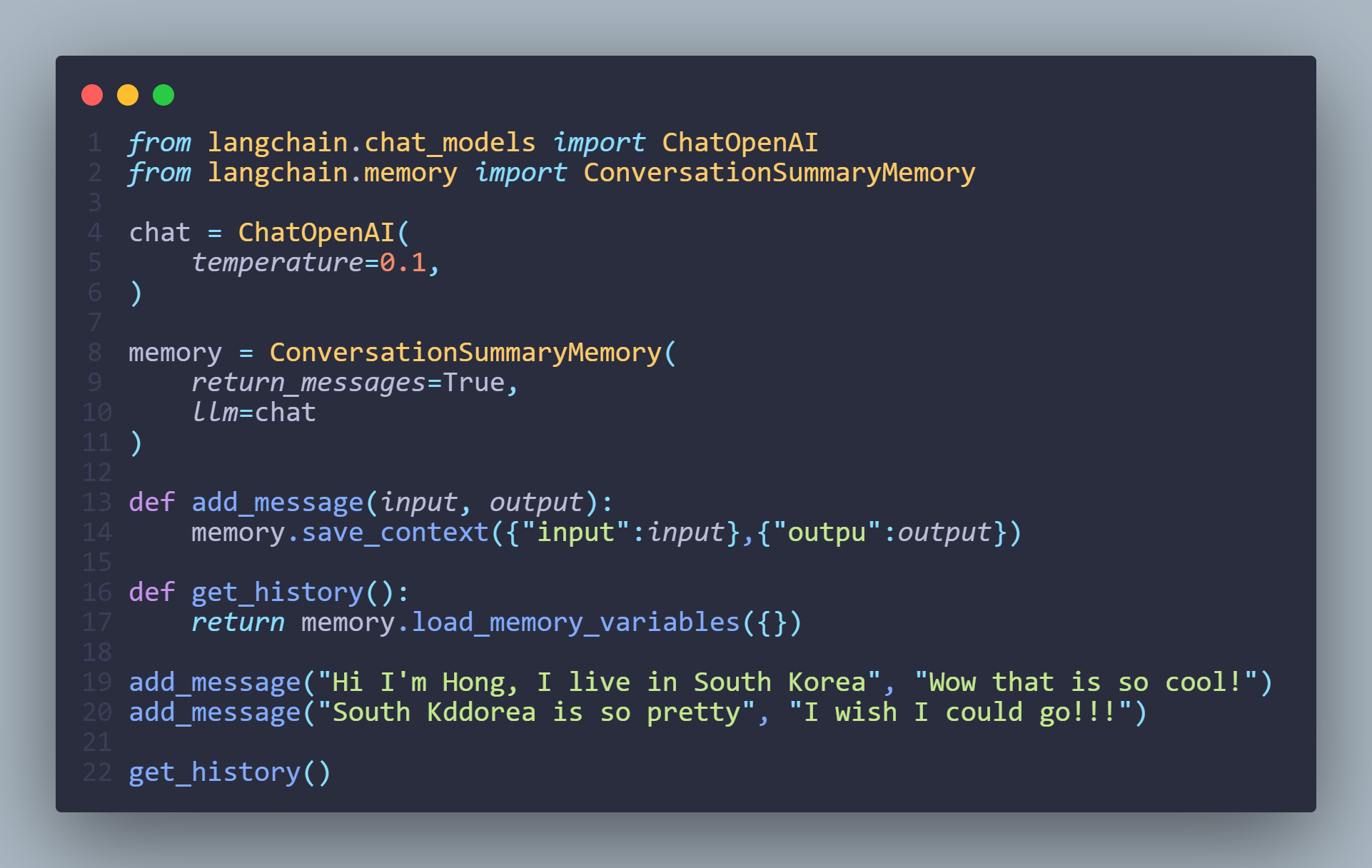 llm 을을 이용하여 대화내용을 요약하여 메세지에 저장