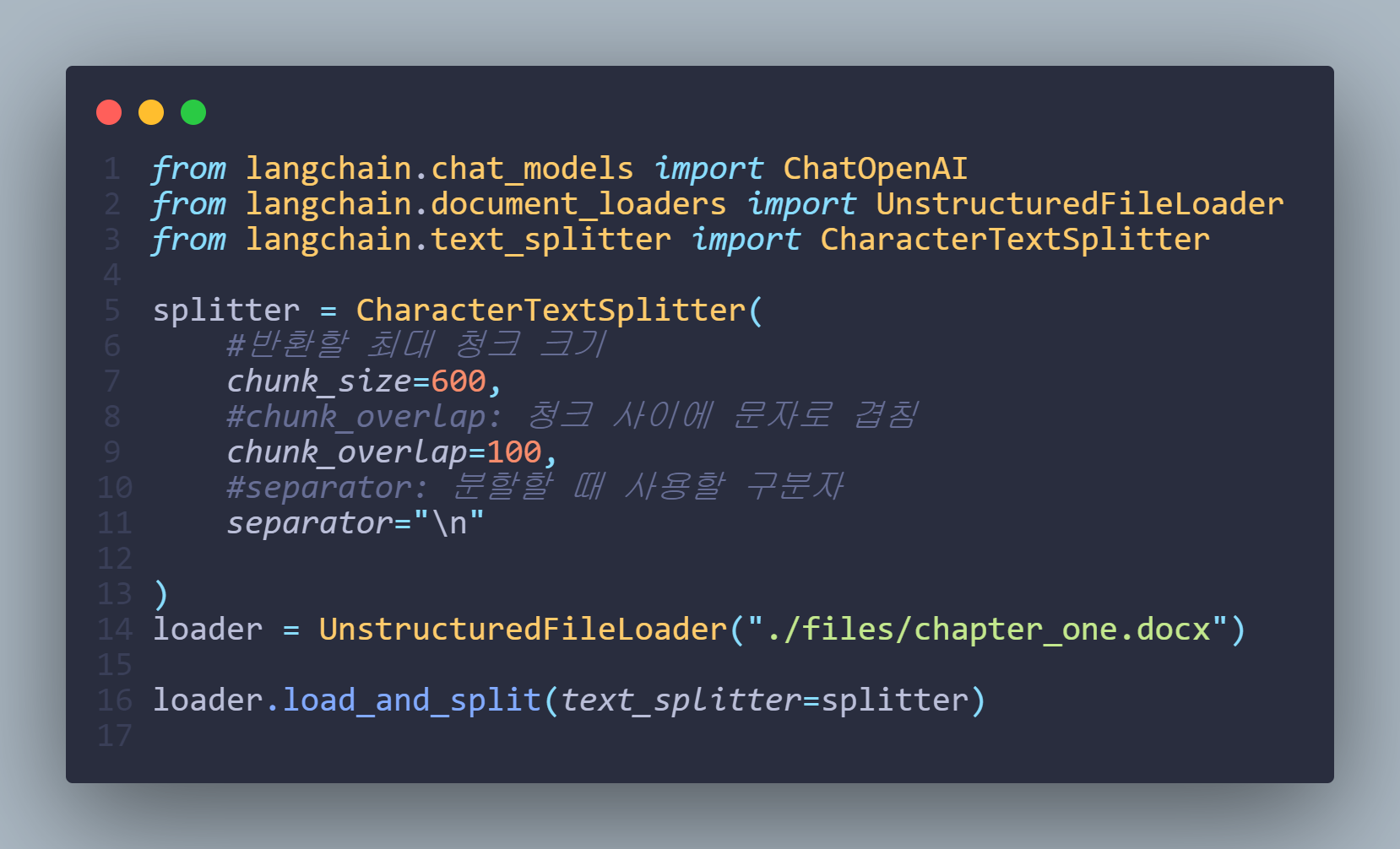 이처럼 각각의 파일마다 다른 class를 호출하다는 대신 UnstructuredFileLoader를 이용하는것이 효율적임