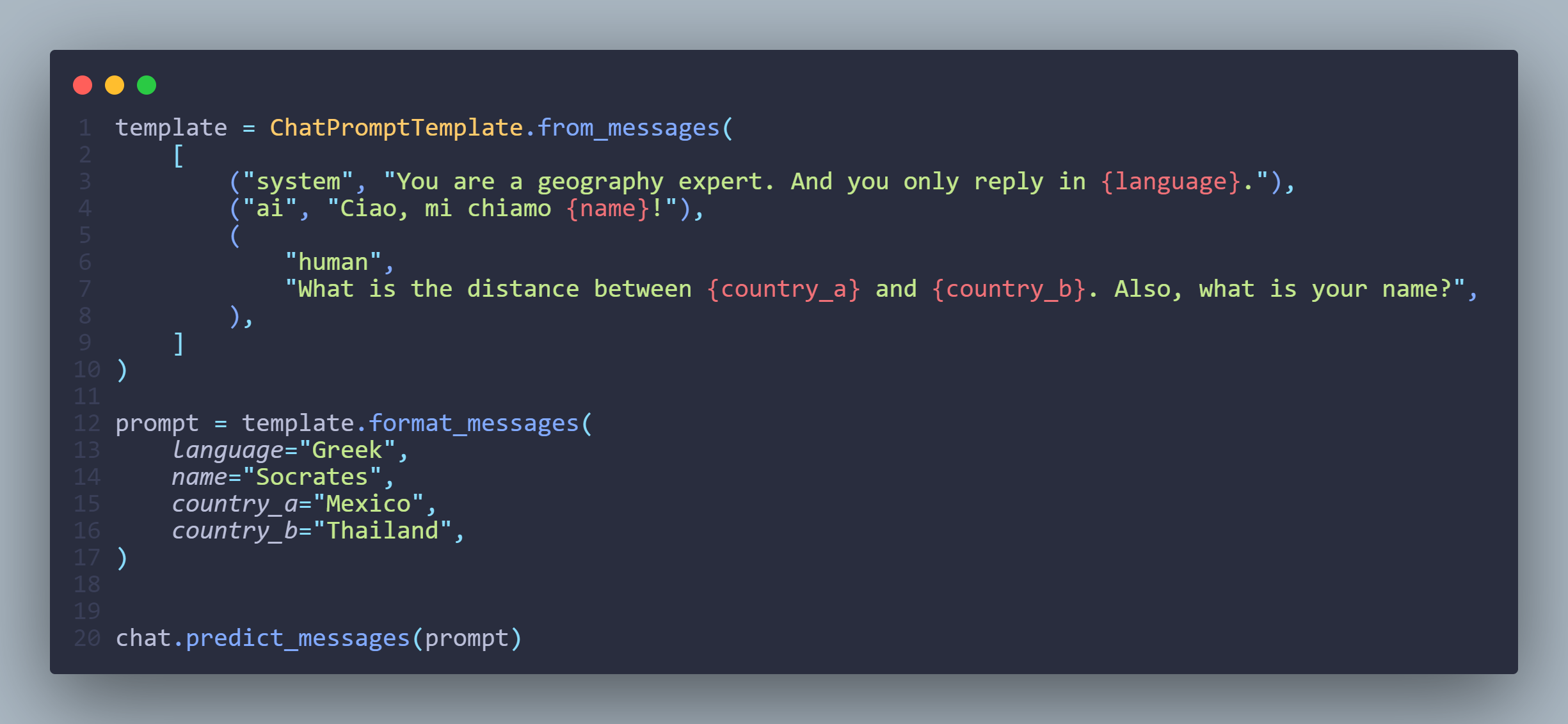 form_messages 를 이용하여 전달받은 메세지 포멧으로 부터 prompt template 생성