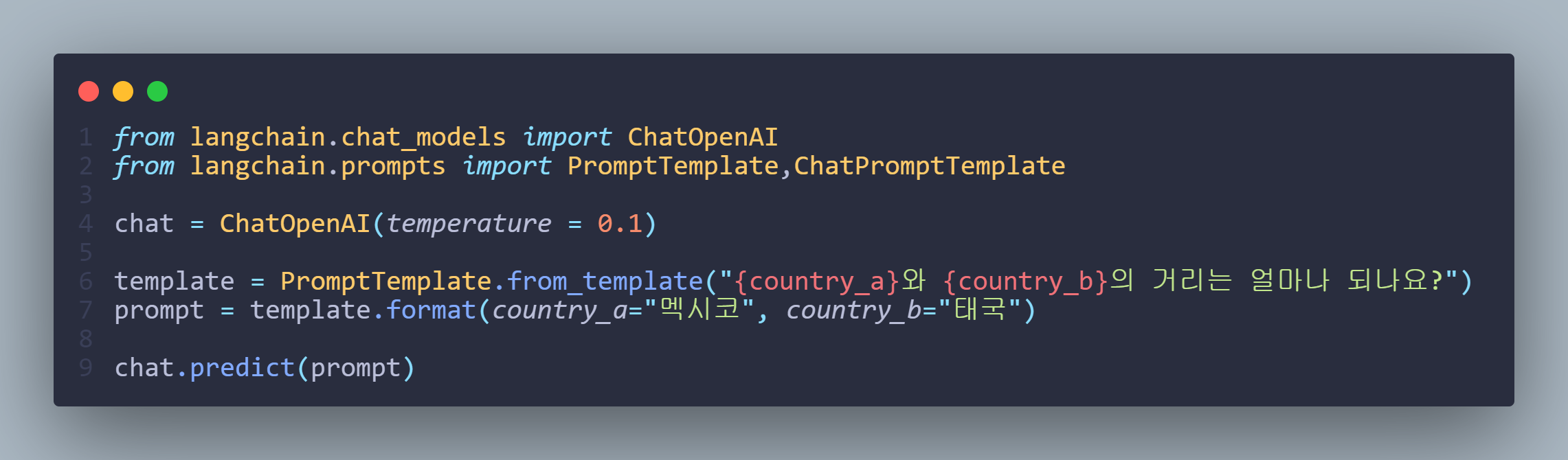문자열 템플릿으로 구성되어 있으며, 프롬프트 생성시 특정 변수를 파라미터로 받을수 있도록 되어 있음