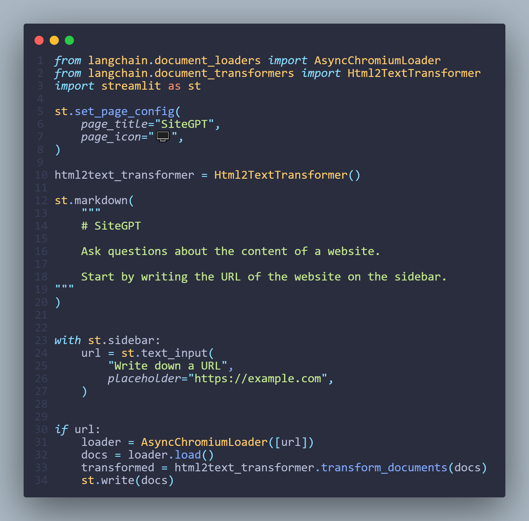 AsyncChromiumLoader 는 페이지를 로드하고, 이후에 Html2TextTransformer 를 사용하여 텍스트로 변환